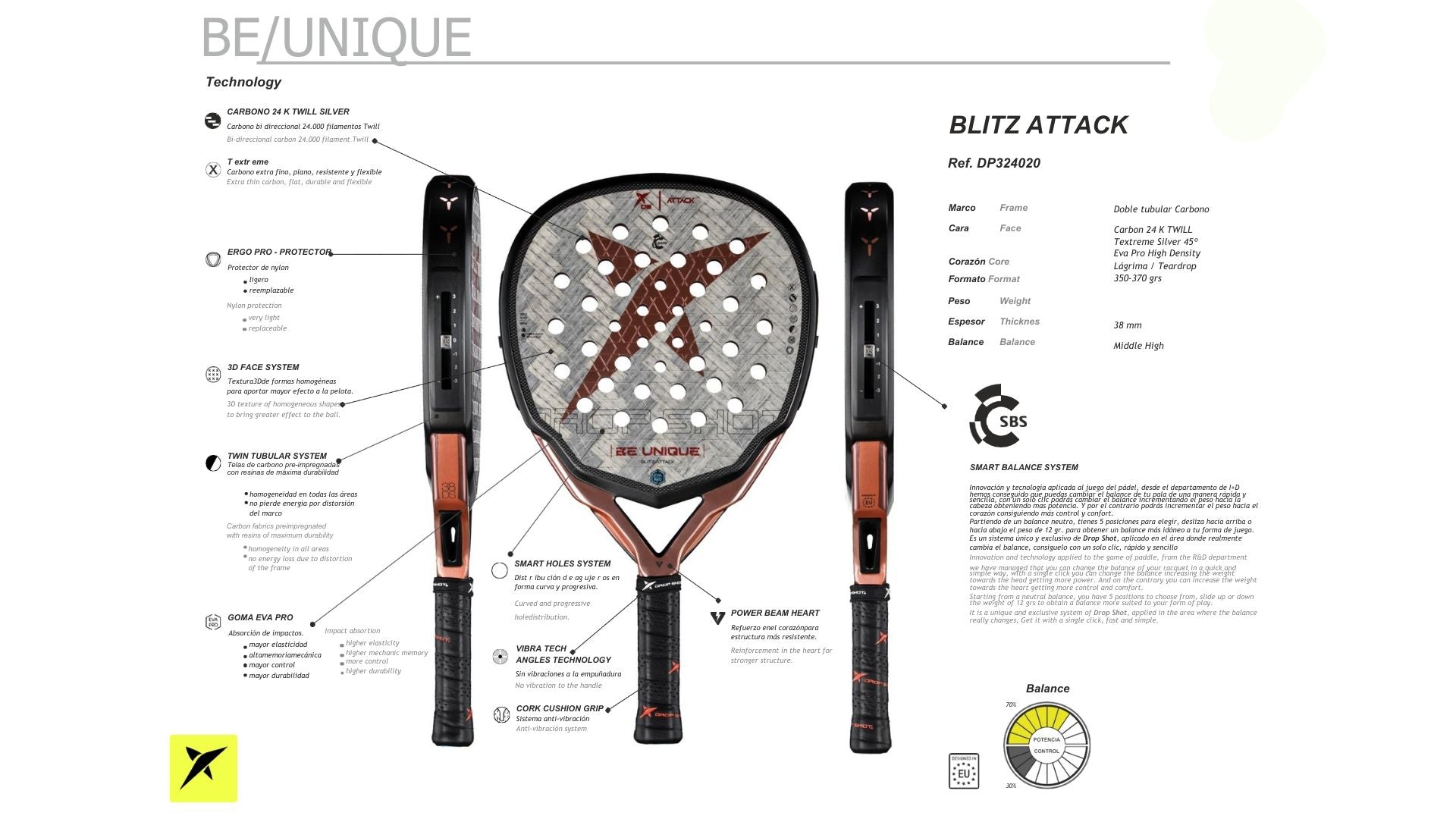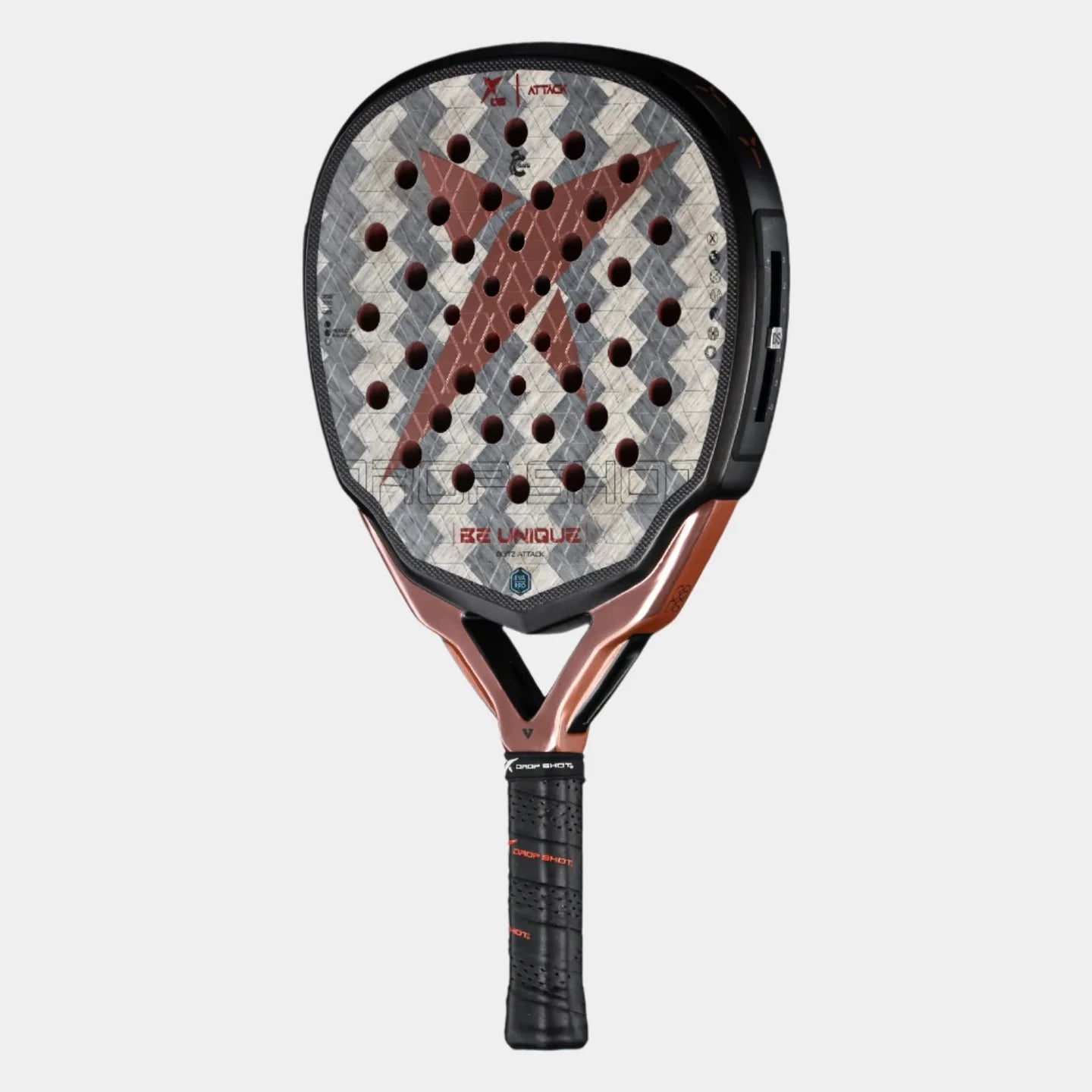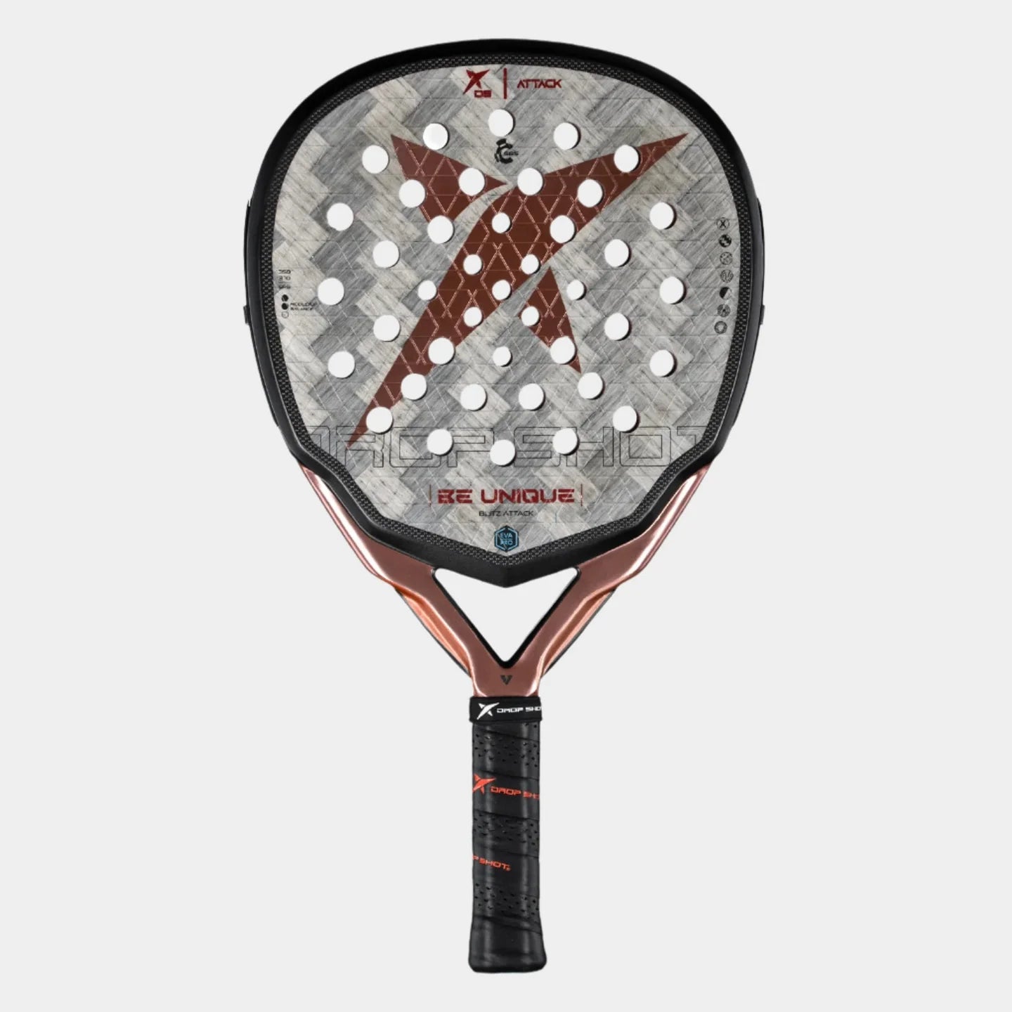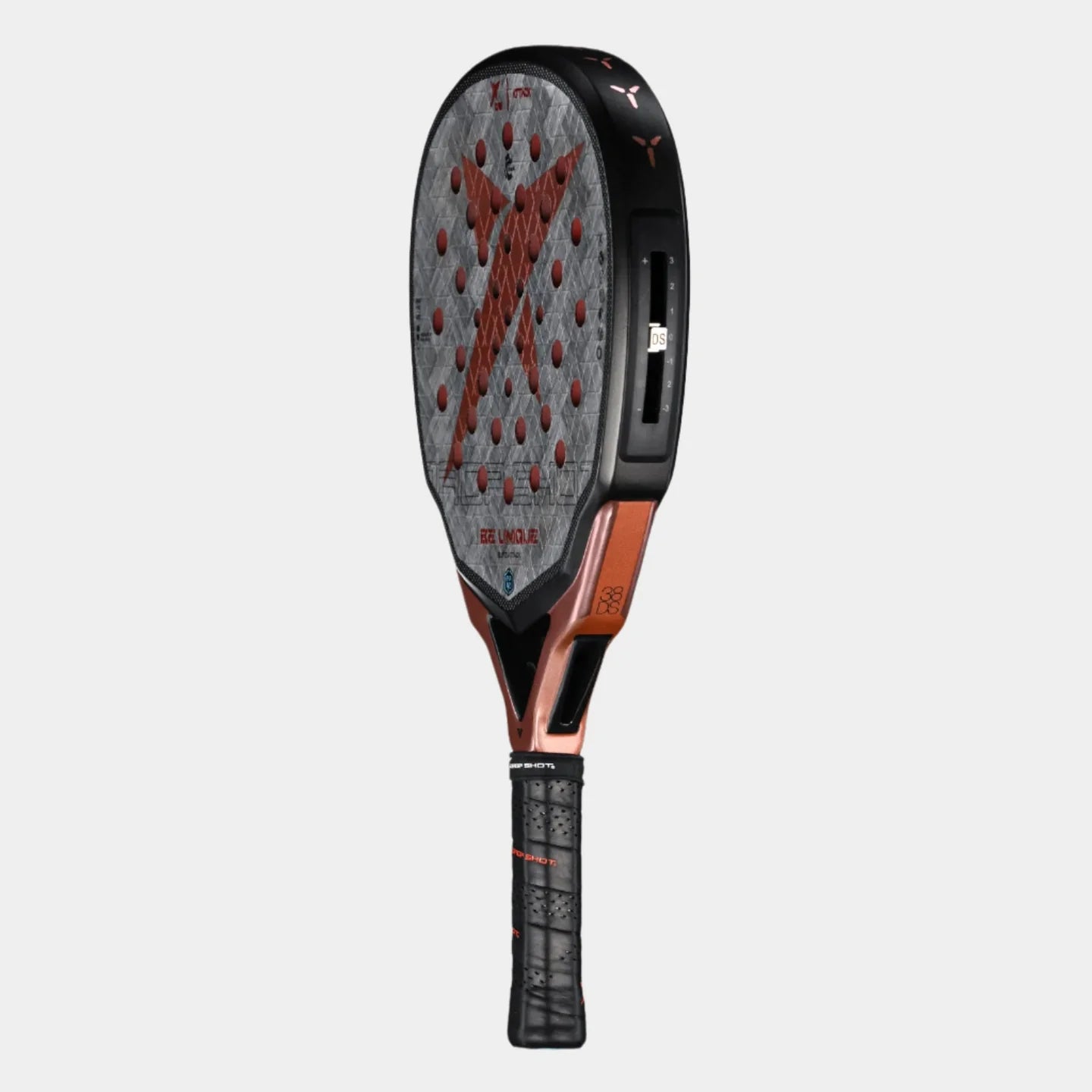 Innovation and technology applied to the game of Padel. You can change the balance of your racket in a quick and simple way; with a single click you can change the balance by increasing the weight towards the head, thereby getting more power. Conversely, you can increase the weight towards the heart of the racket, thus getting more control and comfort. Starting from a neutral balance, you have 5 positions to choose from. Slide up or down the 12gms weight to obtain a balance more suited to your form of play. The Smart Balance System is both unique and exclusive to Drop Shot.
